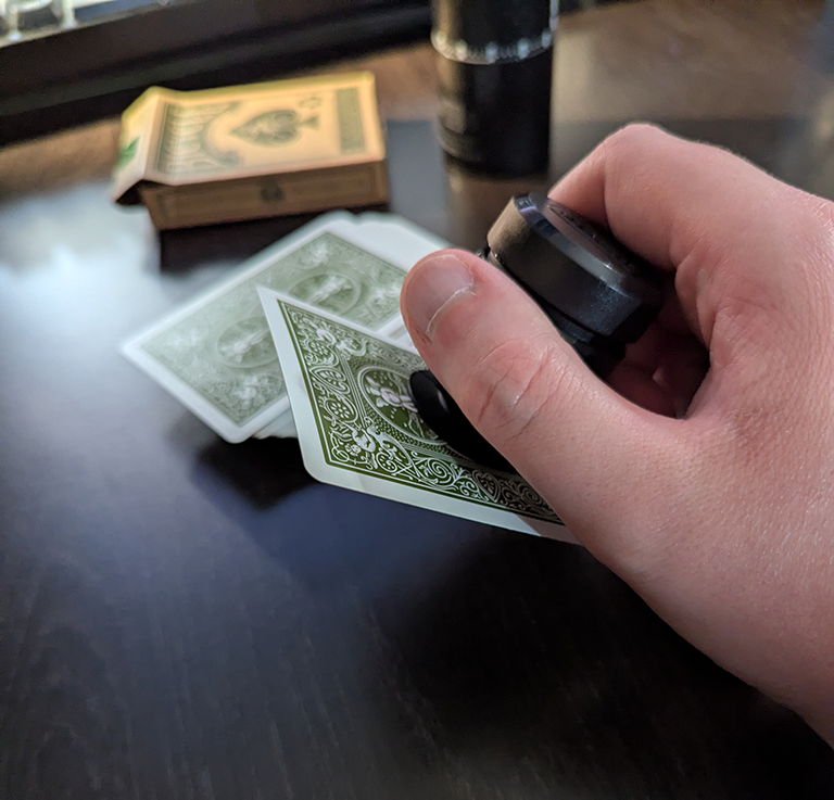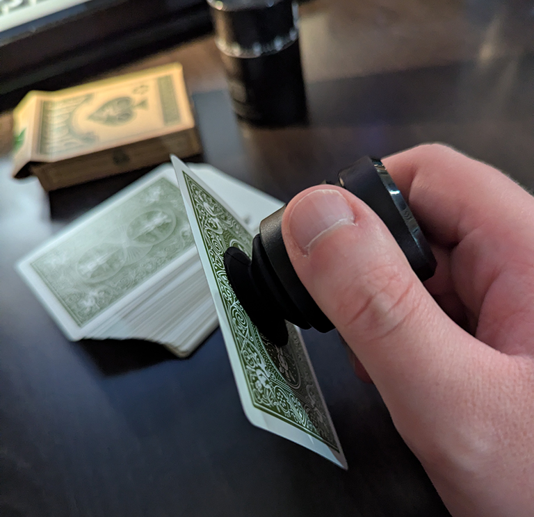 Since my hands are often so dry feeling, the normal oils from my hands that get onto the sleeves can often be a sensory nightmare. I'll probably carry a second around to game nights because it's going to be a lot easier to clean pizza grease off of a P'KUP than it is off of my card sleeves. You know? after someone grabs your cards without asking? π€ ~ If you know, you know.